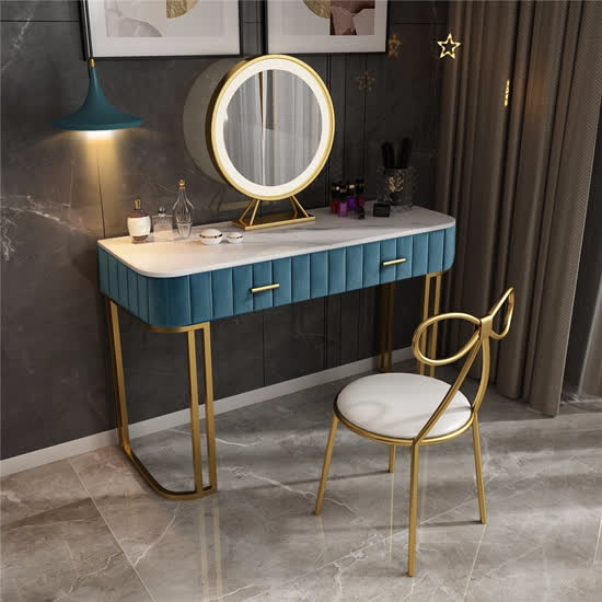 湾湾河木|电脑桌椅,-湾湾河木 现代简约岩板梳妆台(含妆凳)yzC2-2