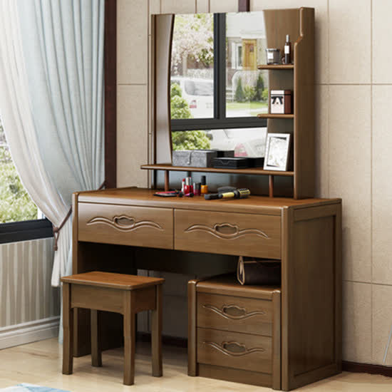 湾湾河木|电脑桌椅,-湾湾河木 中式实木梳妆台(含凳、柜)#uc222