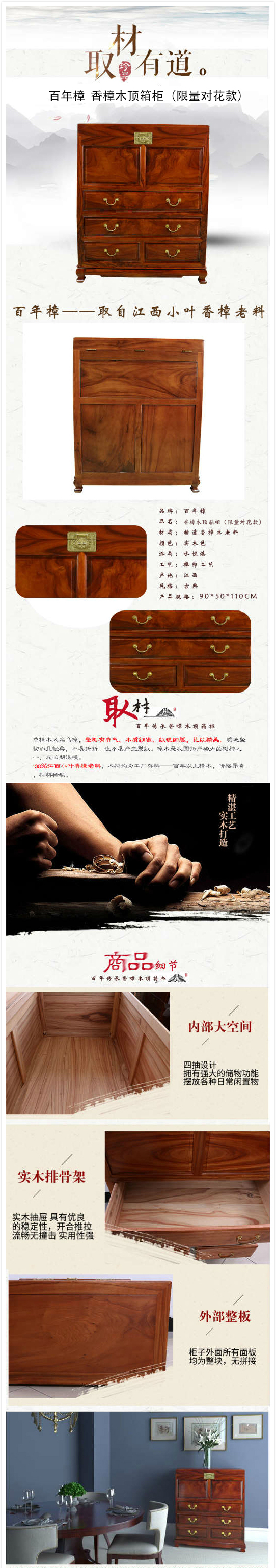 檀福记|书架/格柜,-檀福记香樟木雕花顶箱储物斗柜